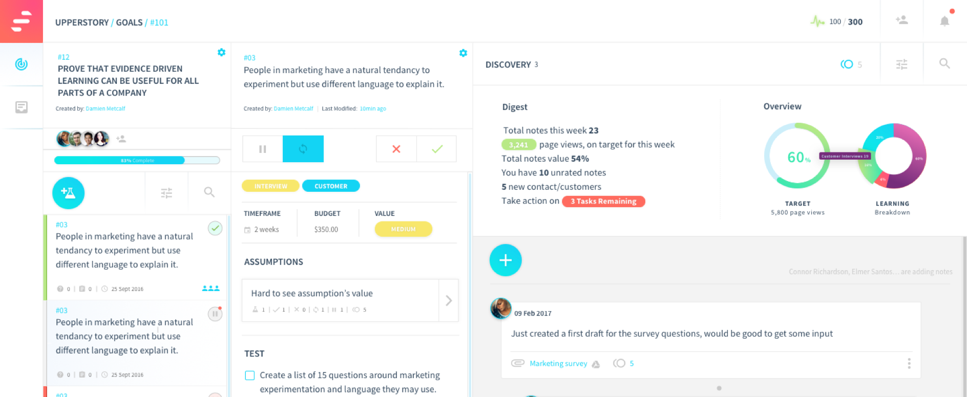 I previously used Excel to run experiments but it wasn't data driven and was hard to show progress. I love that Upperstory provides a simple evidence driven workflow that makes business experiments easier.